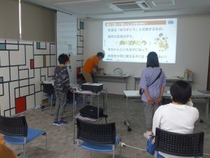 子どもたちがワークを体験している中、