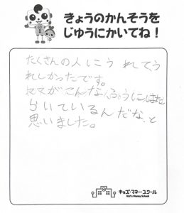 帰るときにはすごく楽しかったと言ってくれて、スタッフ一同とても嬉しい気持ちになりました。