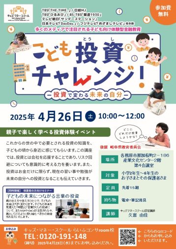 岐阜県各務原市で「こども投資チャレンジ」開催‼に親子一緒に是非ご参加下さい!