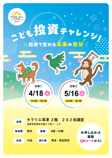 草津市【2026年5月16日(土)午後開催】8歳~12歳 推奨☆ こども投資チャレンジ!