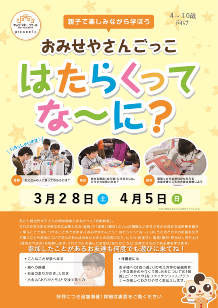 4歳から参加できますので、親子でお金について楽しく学んでみませんか?